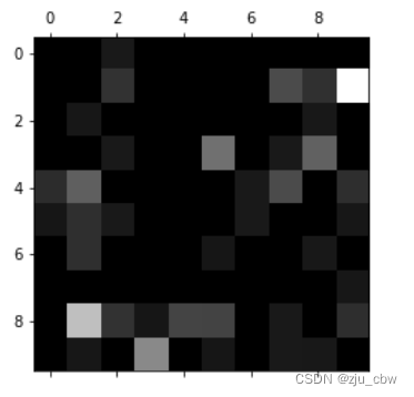 图中白色方框越亮说明预测正确率越高,但是如果只是显示正确率对于混淆矩阵并能说明什么,是没有意义的,其实我们是想看看预测错误部分。