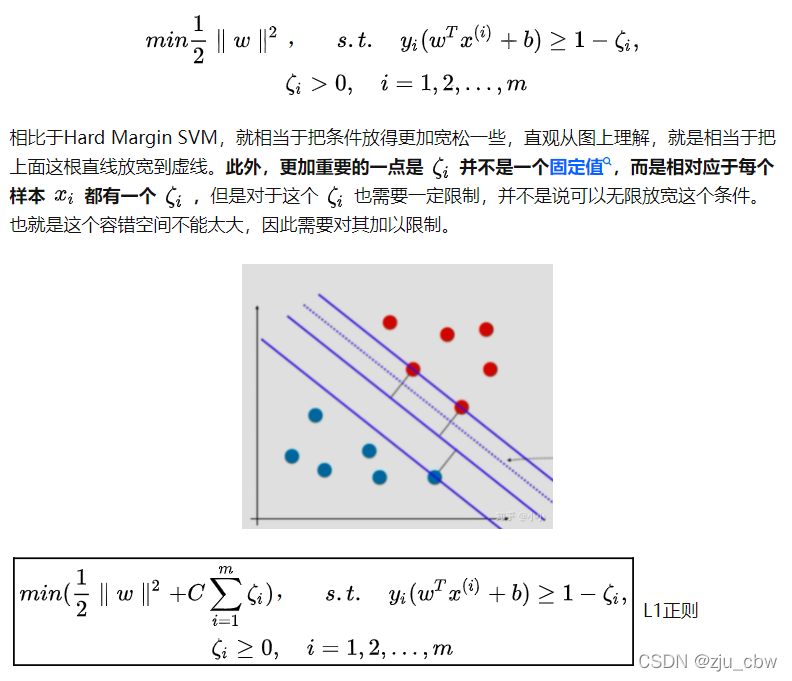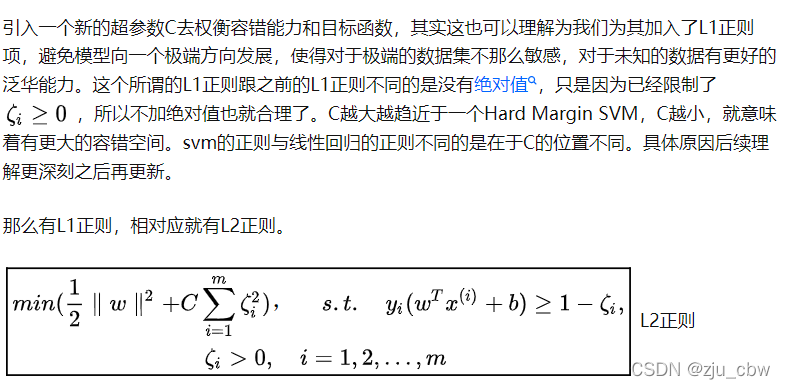 因此不管才以上两种情况的哪个角度出发,都应该考虑给予svm模型部分容错能力。由此引出Soft Margin SVM。