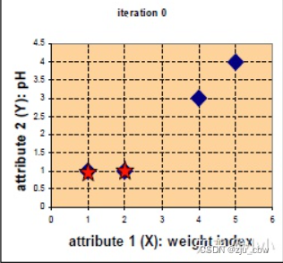 (2)在k次迭代中,对任意一个样本,求其到c各中心的距离,将该样本归到距离更短的中心所在的类;