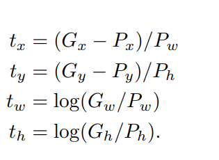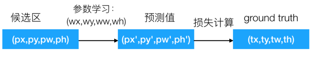 - 回归用于修正筛选后的候选区域,使之回归于ground-truth,默认认为这两个框之间是线性关系,因为在最后筛选出来的候选区域和ground-truth很接近了