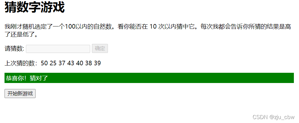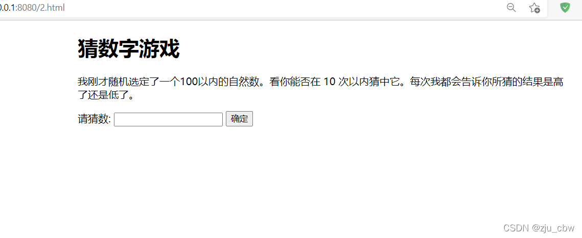 首先是静态页面的实现,一个标题,一段游戏说明,和一个用于输入猜测的表单(此时表单不会执行任何操作)。